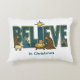 Beautiful nativity scene pillow with the word "Believe" containing the manger, Jesus, Mary, Joseph, a shepherd, sheep and a donkey. On the back is the scripture from John 3.16. Would make a thoughtful Christmas gift for Christian family and friends.