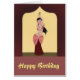 Eine niedliche Geburtstag-Karte zur Illustration eines Bauchtanzers in den Farben Maron und Gelb. Dieses hübsche Mädchen trägt ein traditionelles arabisches Bauchkostüm. Niedliche arabische Nächte. Der Geburtstagsgruß kann auf jede Art von Gruß angepasst werden.