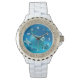 Eine wunderbare Damenuhr mit weißem Armband und grün-weiß-kariertem Ziffernblatt. Trägt sich ganz fabelhaft. Exzellenter Druck, sehr klare Farben. Schönes Design.