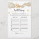 Fügen Sie Ihrer Babydusche eine melodische Drehung mit diesem bezaubernden Namen "The Baby Song Game Card" hinzu, die so gestaltet ist, dass sie mit Ihrem Teddybär "We Are Over the Moon" und Ihrer moon-thematischen Kollektion übereinstimmt. Mit sanften Pastelltönen und Sternenhimmel-Inspiration lädt diese interaktive Aktivität die Gäste dazu ein, beliebte Baby-Songs auf der Grundlage von Hinweisen oder Texten zu erraten. Es ist eine nette Art, Freunde und Familie zu unterhalten und gleichzeitig Ihre geschlechtsneutrale Babydusche spielerisch und unvergesslich behalten. Ein charmantes Spiel, das sich nahtlos in Ihre traumhafte Stern- und Teddybärendekoration einfügt.