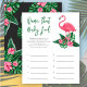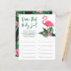 Das Design der Baby-Dusche ist mit rosa Flamingo mit üppig grünen Palmenblättern und tropischen Hibiskus-Blume ausgestattet. "Aloha Baby" Ein tropisches Blumenmuster mit schwarzer Hintergrundfarbe zieht die Rückseite der Karte hoch.