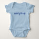 Individuell anpassbare nie aufgeben Text Trendy Template Upload Image Foto Picture Script Baby Geschenk Light Blue Color Baby Jersey Bodysuit.