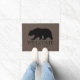 Maßgeschneiderte Begrüßungstürmatte mit schwarzem Bärenlogo-Design. Schwarz-brauner Eintrittsteppich für die Eingangstür mit personalisiertem Familiennamen. Elegante Typografie mit moderner tierischer Silhouette. Erhältlich in kleinen und großen Größen. Alle individuell anpassbaren Farben. Auch gut für Kabine oder Camping geeignet. Stilvolle Wohngestaltung Accessoires für neue Zuhause, Anwesen, Landhaus, Condo etc.