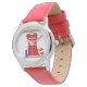Kinderuhr aus Edelstahl mit rotem Lederarmband