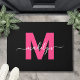 Erstellen Sie Ihren eigenen benutzerdefinierten eleganten schwarz Hot Pink Monogram Script Name Doormat. Dieses stilvolle und feminine Doormat bringt eine warme, einladende Touch zu jedem Eingang. Es zeichnet sich durch ein charmantes Monogramm-Design auf schwarzem Hintergrund aus, das einen fett rosa Anfangsbuchstaben und einen fließenden weißen Schriftnamen für ein wunderbar personalisiertes Aussehen aufweist. Ideal für neue Eigenheimbesitzer, Vermächtnismädchen oder alle, die eine Touch Persönlichkeit in ihren Raum einbauen möchten, ist dieser gürtelschwarze und magentafarbene mit Monogramm Türmchen das ideale Geschenk für die Hauswärmung von Party, Weihnachten oder jedem besondere Anlass. Ob Studentinnenverbindung, Uni, Studentenwohnheim, Appartement, Schlafzimmer oder Zuhause, diese Türmatte verbindet Eleganz mit einem Hauch von Vergnügen und kreiert ein elegantes Statement-Stück, das so praktisch wie hübsch ist. Ideal, um Ihren Stil direkt vor der Haustür zu präsentieren!