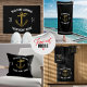 Fügen Sie Ihrer Zuhause mit diesem personalisierten Kissen eine Touch nautischen Charmes hinzu! Dieses stilvolle Kissen besticht durch ein klassisches Ankerdesign mit einem Seilstück, das auf einem reichen schwarz-goldenen Hintergrund schön gerendert ist.
