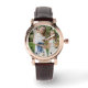 Uhr, Vintage Männeruhr mit schwarzem Lederarmband