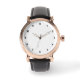 Custom Foto Art Text Männer's Rose Gold Vintage schwarze Strap Watch mit Uhren Gesichtspunktzahlen. Fügen Sie Kunst, Foto oder Farbe hinter dem Gesichtsbild der Uhr hinzu, oder behielt Sie den Look. Bearbeiten Sie das Bild in der Symbolleiste Entwurf, wenn das Bild angepasst werden muss.