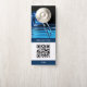 Benutzerdefinierter qr Code Business einfache minimalistisch blaue weiße Türklammer Karte. Fügen Sie Text, Foto, Logo, Bild, Bild hinzu; personalisieren Sie die Türhängekarte mit qr-Code , Logo, Website, Nachricht , Information. Für kleine Unternehmen, Unternehmen, Hotels, Werbeaktion Marketing Tool für Kunden, Besucher. Ändern Sie den Text, und personalisieren Sie ihn mit Ihren geschäftlichen oder persönlichen Daten. Werbeaktion und Lieferung für Unternehmen, Geschäfte, Bibliotheken, kleine Organisationen, Geschäfte, Veranstaltungen
