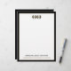 Machen Sie eine berufliche Erklärung mit unserem Geschäftsbriefkopf für kundenspezifische Logos. Dieses Briefkopf-Design verfügt über ein individualisierbares Template Logo auf weißem Hintergrund mit Ihrem Firmennamen und Kontaktinformationen elegant in goldfarbener klassischer Typografie, gerahmt in schwarz präsentiert. Die Rückseite ist mit einem soliden schwarzen Hintergrund versehen, der dem Design Zusammenhalt verleiht. Jedes Blatt zeichnet sich durch Professionalität und Raffinesse aus und eignet sich somit hervorragend für offizielle Korrespondenz, Rechnungen oder wichtige Geschäftsdokumente. Erhöhen Sie Ihre Markenidentität mit diesem exquisiten Briefkopf.