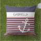 Schöner zeitgenössischer Schiffsanker, auf einem klassischen und schicken marineblau und hellkorallenrosa Streifen Muster. Mit Raum zum Personalisieren oder Anpassen mit Namen, Initialen oder Monogramm Ihrer Wahl auf einem weißen Hintergrund. Erschaffen für den Kapitän, Liebhaber des Bootes, Segeln, Urlaub und helle sonnige Sommertage auf dem Wasser oder Strand.