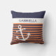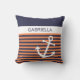 Schöner zeitgenössischer Schiffsanker, auf einem klassischen und schicken marineblau und hellorange Streifen Muster. Mit Raum zum Personalisieren oder Anpassen mit Namen, Initialen oder Monogramm Ihrer Wahl auf einem weißen Hintergrund. Erschaffen für den Kapitän, Liebhaber des Bootes, Segeln, Urlaub und helle sonnige Sommertage auf dem Wasser oder Strand.