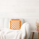 Das moderne Monogramm-Kissen des Schachbretts in einem modernen, trendigen Orangendesign.