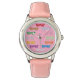 Kinderuhr aus Edelstahl mit rosa Lederarmband
