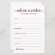Diese einfachen, bordeauxroten und weißen, modernen, minimalistischen, handgeschriebenen Skriptblätter "Advice & Wishings" sind perfekt für Brautparty-, Probe- oder Hochzeitsgäste. Die Menschen werden die Liebe haben, die Anweisungen zu bekommen - sie machen es so einfach, liebende Ratschläge und gute Wünsche verlassen. Sie werden noch auf Jahre geschätzt.