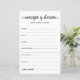 Diese einfachen, schwarz-weiß, modern, minimalistisch, handgeschriebenen Schriftzeichen Spanish Advice & Wishings/Consejos y Deseos sind perfekt für Brautparty-, Probe- oder Hochzeitsgäste. Die Menschen werden die Liebe haben, die Anweisungen zu bekommen - sie machen es so einfach, liebende Ratschläge und gute Wünsche verlassen. Sie werden noch auf Jahre geschätzt.