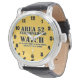 Uhr, Vintage Männeruhr mit schwarzem Lederarmband
