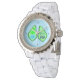 Eine wunderbare Damenuhr mit weißem Armband und grün-weiß-kariertem Ziffernblatt. Trägt sich ganz fabelhaft. Exzellenter Druck, sehr klare Farben. Schönes Design.