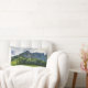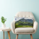 Dieses Kissen zeigt das Bild eines Berges mit einem Kiefernwald an einem bewölkten Sommertag in Norditalien