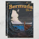 Retro altes Bermuda Urlaubsplakat. Bermudan Strandreiseplakat. Cartoon Höhlenposter.