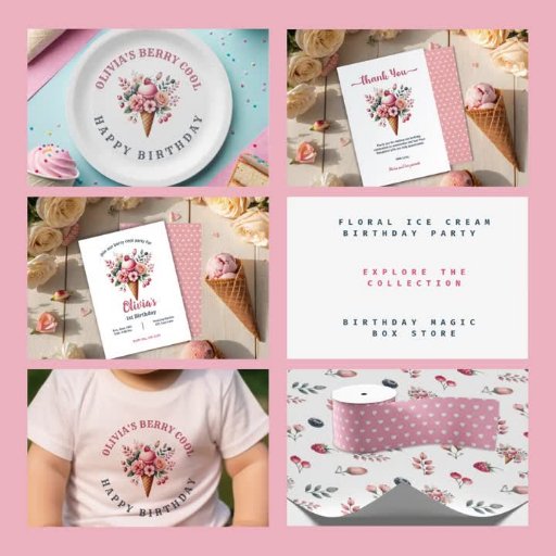 Floral Ice Cream Watercolor Girl Birthday PartyDesignt von Dalia Hasan