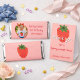 A soft pink background with strawberries, flowers, and greenery