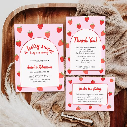 Berry Sweet Girly Strawberry Baby Shower Einladung
