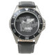 Herrenuhr aus Edelstahl mit schwarzem Lederarmband