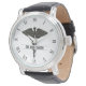 Herren medizinische Uhr mit eleganten, sauberen schwarzen Kadukeus. Perfekt für alle Unternehmen, die sich mit der Gesundheitsbranche beschäftigen: Medizinische Praxis, Arztpraxis, Arztpraxis, Pharmaindustrie, Apotheke, Klinik und Krankenhaus. Für Krankenhauspersonal, Klinikpersonal, Ärzte, Krankenschwestern und Krankenschwestern; elegant, elegant und wertvoll.