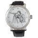 Uhr, Vintage Männeruhr mit schwarzem Lederarmband