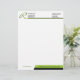 © Sozialite Designs. Das berufliche Business Letterhead Design beinhaltet einen zweifarbigen Kopf und Fußzeilen sowie ein dunkelgrünes Header-Monogramm. Das zweifarbige Bar in der Kopfzeile kann verschoben und neu formatiert werden. Unser Design passt zu den Beruflichen Monogram Visitenkarten.
