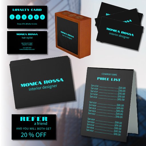 Minimalistischer Schwarz Soli Farbhintergrund und Neon Blue moderne Schriftart Business Card. Personalisieren Sie Ihre individuelle Verwendung. Klassisches Design | Elegantes Produkt | Trendige Farben | Stilvoll und modern | Berufliches Geschäftsdesign