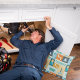 Beruflicher Klempner für den Einsatz mit Installations-Icons und Grafiken.