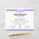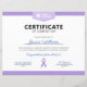 Ein modernes Abschlusszeugnis für Krebspatienten, die die Strahlentherapie abschließen. Das Design verfügt über ein Lavendelfarbschema, das alle Krebsarten repräsentiert. Das Lavendelband kann beliebig personalisiert werden. Alle Textelemente sind zentriert und verlassen genug Platz auf der links und rechten Seite für persönliche handgeschriebene Unterschriften und Botschaften von Onkologen und Ärzten.