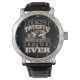 This heartfelt wall clock is the perfect tribute to an exceptional trucker father. Against a black background with a light tan rim, it prominently features a semi-truck graphic and the bold, distressed text "BEST TRUCKIN' DAD EVER". It's an ideal gift to show appreciation for a dad who is both a dedicated trucker and a loving parent. The design tool can also be used to add custom text if you want your name or company on this clock. You can customize the color of the frame to any color you desire by going into the design tool.