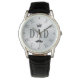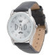 Vatertag Armbanduhr mit Original-Design BEST VATER EVER auf Imitaten silberfarbenen Hintergrund. Die eleganten schwarzen Buchstaben der Wörter BEST und EVER befinden sich auf dem Rad anstelle der Zahlen. Das Wort VATER befindet sich in der Mitte, darüber ist die Krone, und darunter ist der Schnurrbart. Sie können die Hintergrundfarbe, die Buchstabenfarbe, den Schriftart und vieles mehr ändern, indem Sie auf den Button "Personalisieren" klicken und dann auf die Inschrift "Klicken Sie, um weiter anzupassen" klicken.