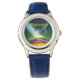 Kinderuhr aus Edelstahl mit blauem Lederarmband