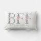 Dieses elegante BESTE FREUNDIN-Kissen mit blühenden, rosa und lavendelfarbenen Rose-Design, das die grünen Salbeibriefe schmückt, ist für immer ein absolutes Muss. Unten in einem modernen, handgeschriebenen Skript-Schriftart lautet das Zitat "beste Freunde für immer". Entworfen von der Künstlerin Susan Coffey.