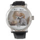 Uhr, Vintage Männeruhr mit schwarzem Lederarmband