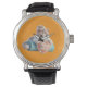 Uhr, Vintage Männeruhr mit schwarzem Lederarmband