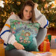 Niedliches Weihnachtskissen - "Das beste Weihnachtsfest ist immer bei Großeltern" mit einem farbenfrohen, blauen Holzhintergrund mit Weihnachtsdekorationen, einem Vogel, einem kleinen Mädchen und einem Baby. Das wäre ein tolles Weihnachtsgeschenk von den Großkindern bis zu den Großeltern. Niedliche Aquarellgrafik, beidseitig handgemalt. Der gesamte Text erlaubt eine Anpassung. Wird unter dem Weihnachtsbaum der Großeltern großartig aussehen.