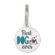 Dieses trendige Hundeschild mit dem Aufdruck "Bester Hund je" in aquamarinen und schwarzen modernen Schriftart. Die Rückseite ist mit dem Namen Ihres Hundes und Ihrer Telefonnummer anpassbar und mit winzigen Pfoten dekoriert. (siehe koordiniertes Zubehör für die "Beste Hundemutter aller Zeiten" in meiner Sammlung)