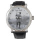 Uhr, Vintage Männeruhr mit schwarzem Lederarmband