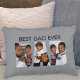 Dieses Kissen für Vater ist mit drei Fotovorlagen in Form des Wortes VATER dekoriert. Es heißt "Bester Vater je". Der Text und die Fotos sind anpassbar.