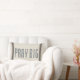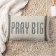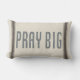 Lumbales Kissen mit braunen Streifen und die Wörter "beten großes" in der grauen Beschriftung.
