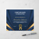 Das Gold Blue Certificate Paper Sheet zur Wertsteigerung Award Gold Award ist ideal, um Ihren Mitarbeitern, Mitarbeitern oder Schülern vorzustellen, wie sehr Sie ihren Beitrag zu Ihrem Unternehmen, Ihrer Schule oder Ihrem Unternehmen schätzen. Personalisieren und ersetzen Sie die Informationen durch Ihre. Es kann als Auszeichnung verwendet werden, um eine Person zu erkennen aus verschiedenen Gründen und nur weil. Personalisiere es.