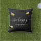Mit fröhlichen, lächelnden Hummeln dekoriert. Ein schicker schwarzer Hintergrund. Weiße Schrift mit Swashes und den Text: Bee Happy. Personalisieren und fügen Sie Ihren Namen, goldfarbene Buchstaben. Ideal für das Sommerleben im Freien, im Garten oder am Pool.