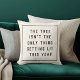 Wenn Cocktails auf Ihrer Weihnachtskarte stehen, können Sie die Säle mit diesem frechen und modernen Kissen bedecken. Das Zitat "Der Baum ist nicht das einzige, was dieses Jahr beleuchtet wird" in fett schwarzen Schriftzeichen auf Elfenbeinhintergrund.