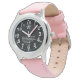 Kinderuhr aus Edelstahl mit rosa Lederarmband