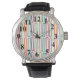 Die Armbanduhr dieser Herren hat ein modernes Design aus sich wiederholenden Rechtecken in aquamarin, orange, rüben und orange auf einem weißen Feld. Wenn Ihnen das Design gefällt, aber andere Farben bevorzugen, dann schreiben Sie mir.